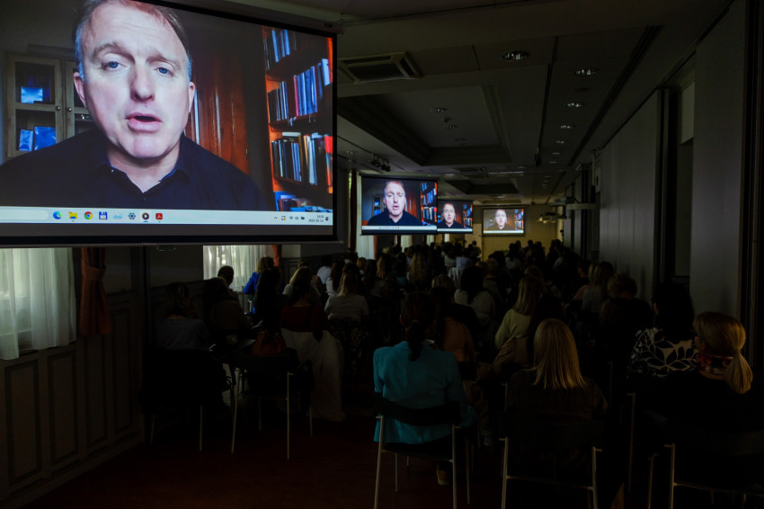 A konferencia Lackfi János, József Attila- és Prima Primissima díjas író, költő előadásával kezdődött, aki amerikai utazása miatt jelenlétével nem tudta megörvendeztetni a résztvevőket, de előadását videón eljuttatta a pedagógiai intézethez. Személyisége, humora a képernyőn keresztül is elvarázsolta a jelenlévőket, a nevetés hullámai többször végigsöpörtek az előadótermen. A gyermeki lélekről beszélt, amely őszinte, játékos, rendbontásra mindig kapható. A világra történő rácsodálkozás közben számos félrehallást, félreértelmezést, átlényegítést él meg, amelyek akár naponta újabb humoros pillanatokat szereznek a kisgyermekek közvetlen környezete számára.