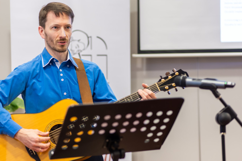 A délelőtti program zárásaként Lackfi Jánosnak erre az alkalomra gyermekdalok dallamára írt költeményeit hallgathatták meg, énekelhették el a résztvevők a kivetített szöveg segítségével. A közös éneklést gitárjátékával Gyombolai Bálint énekművész, karnagy, zenepedagógus vezette. A közel száz résztvevő alkalmi kórusa nagyon szépen szólt, ami nem is olyan meglepő tagjainak foglalkozását figyelembe véve.