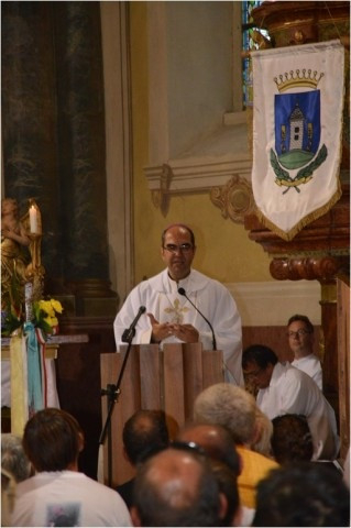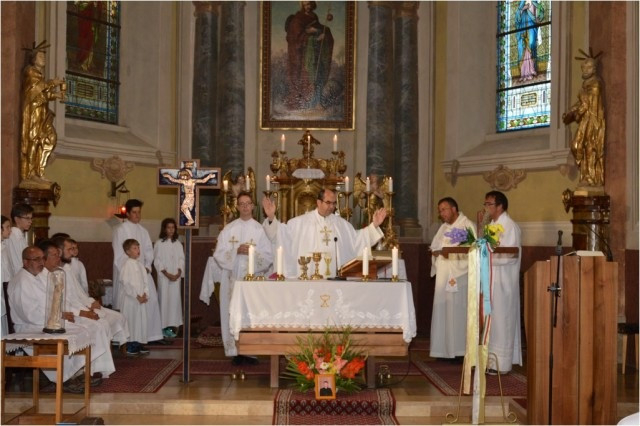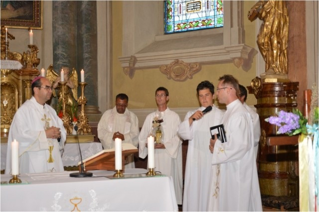 A zarándokokat Székely János áldotta meg a templom előtt, majd a szentmisén együtt celebrált azokkal a papokkal, akik a híveket kísérték. Szentbeszédében utalt rá: vannak utak, amiket csak a lábunkkal járhatunk végig. A zarándoknak nagy szíve van. Elindul, hogy találkozhasson az élő Istennel.