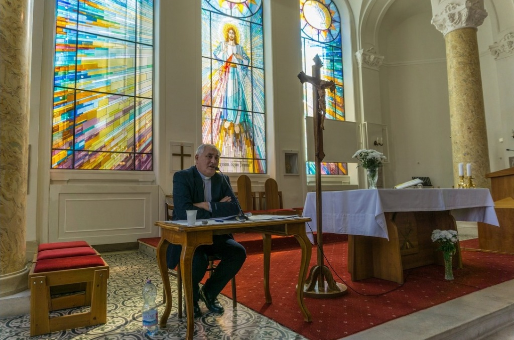Nem az ember önmagában csúcsa a világosságnak a sötét világban, hanem az emberi kapcsolatok azok. Ez az értelme ennek a csütörtöki „gyülevész” csapatnak is, akiket összehordott a Szentlélek szele: az, hogy jelen vagyunk egymás számára – fogalmazott a lelkivezető. – Az Istennel és az egymással való kapcsolatunk által tudunk világosság maradni, hiszen Isten nem magányos farkasnak teremtett minket, hanem kapcsolatra.