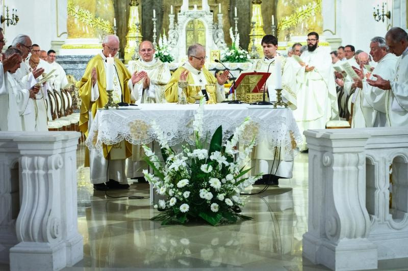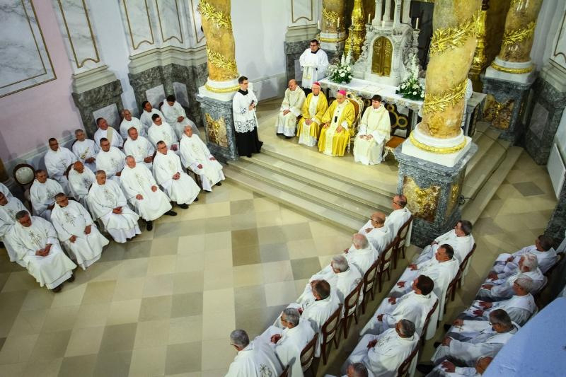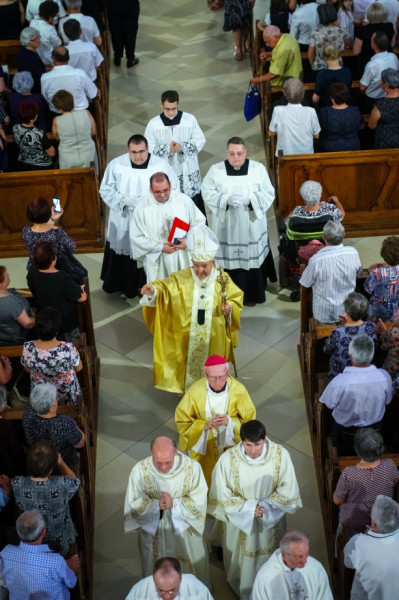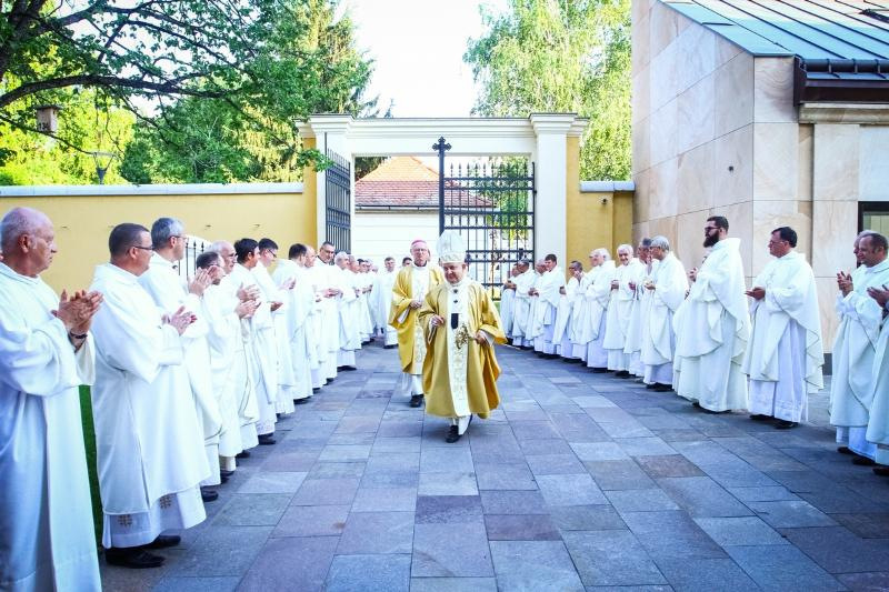 Az ünnepi szentmise főcelebránsa Bábel Balázs érsek volt. A székesegyházat megtöltötték az ünneplő hívek, koncelebrált Varga Lajos váci segédpüspök, az egyházmegye papjai, a főpásztor egykori évfolyamtársai, valamint a Regnum Marianum közösség papjai is.
