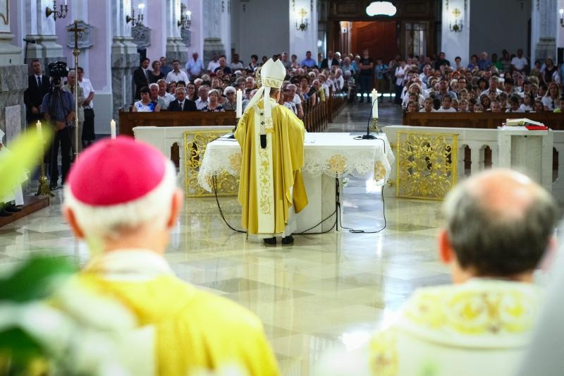 Ezt követően Bábel Balázs a székesegyház felszenteléséről emlékezett meg. Hangsúlyozta: a templom nem csak egy épület. Ha lemegyünk az alapokig, ami a felújítás során meg is történt, megtaláljuk az alapkövet. Számunkra az alapkő Krisztus, akire emberi életet, példát, akaratot kell építeni. Ha nem Krisztusra építünk, akkor az életünk pótcselekvés. A templom a hívek közösségének jelképe, melyet Isten jelenléte teremt meg. Programunk, hogy az életet szolgáljuk az élő kövekkel. A kalocsai nagytemplom Szűz Máriáról van elnevezve, akit Magyarok Nagyasszonyaként is tisztelünk. Mária a magyarok vallásosságához, kereszténységéhez elengedhetetlenül hozzátartozik. Ezt a tiszteletet is építeni, őrizni kell.