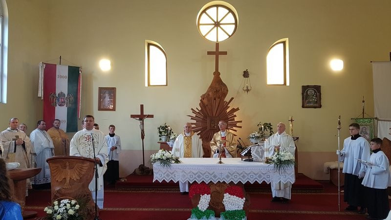 A jubileumi szentmise főcelebránsa Majnek Antal megyéspüspök volt, aki húsz esztendővel ezelőtt felszentelte a templomot. A zarándokokat, a vendégeket és a szentmisét bemutató lelkipásztorokat a plébános köszöntötte a szentmise elején. Ezután a püspök mondott köszöntőt, arra buzdítva a jelenlevőket, hogy a szentmisében adjanak hálát azokért a kegyelmekért, amelyek húsz éven keresztül áradtak Isten jóságából a helyi lelkipásztorokon keresztül a hívekre.