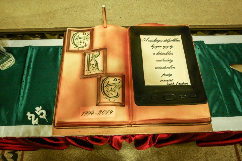 „Huszonöt év egy ember és egy közösség életében is jelentős életkor, egy nemzedékváltásnyi idő” – kezdte köszöntőjét Ásványi Ilona, az EKE elnöke. Emlékeztetett: az egyesület alapítói egy szakmai, szellemi és ökumenikus közösséget hoztak létre 1994-ben, vállalva az együttműködést, de a konfrontációt is az állam képviselőivel és az egyházi fenntartókkal. A különböző felekezetek képviselői a munka során megtalálták a közös nyelvet, a kezdeti bizalmatlanság is feloldódott. Mindnyájukat összekötötte a közös hivatás, a könyvtárosi szakma. Az egyesület tagjai az évek folyamán munkatársakká, barátokká váltak. Mindig azt keresték, ami összeköt, és nem azt, ami szétválaszt, Jézus parancsát tartva szem előtt: „Arról ismeri meg mindenki, hogy tanítványaim vagytok, ha szeretettel vagytok egymás iránt” (Jn 13,35). Nem véletlen választották a mai ünnepség mottójául Szent Ágoston szavait: Legyen „a szükséges dolgokban egység, a kétségesekben szabadság, de mindegyikben szeretet”. Végül Ásványi Ilona hálát adott Istennek, és megköszönte az alapítók, minden egyházi könyvtáros és az egyesületi tisztségviselők munkáját.