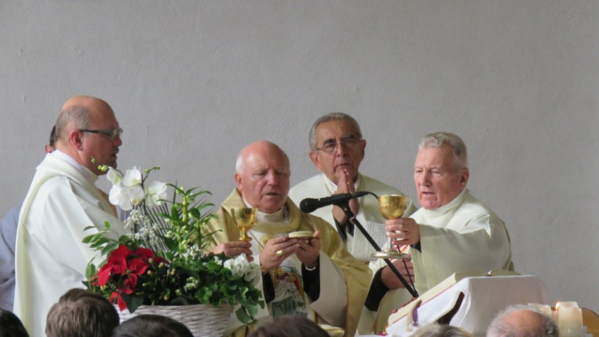 Az ünnep elején Tamás József püspök mutatott be hálaadó szentmisét, amelynek szónoka Fodor András, a Debrecen-Nyíregyházi Egyházmegye püspöki helynöke volt, aki megosztotta az ünneplő közösséggel az iskola elindulásának háttértörténetét. Szinte érezni lehetett a beszédből, hogy itt valóban a Szentlélek műve valósult meg. Ezt az „égi” támogatást azóta is naponta megtapasztaljuk. A Szentlélek sugallta a zarándokház építését (épp a pünkösdi búcsú alkalmával), ő ültette el az iskolaalapítás gondolatát, ő rendel és rendelt az ügy mellé mindent és mindenkit. Hiszen hatalmas erőre, együttműködésre, jóakaratú, támogató emberekre volt mindvégig szükség. Ahogyan a szónok fogalmazott: „Ő a fő alkotó, mi valamennyien eszközei, munkatársai vagyunk.”