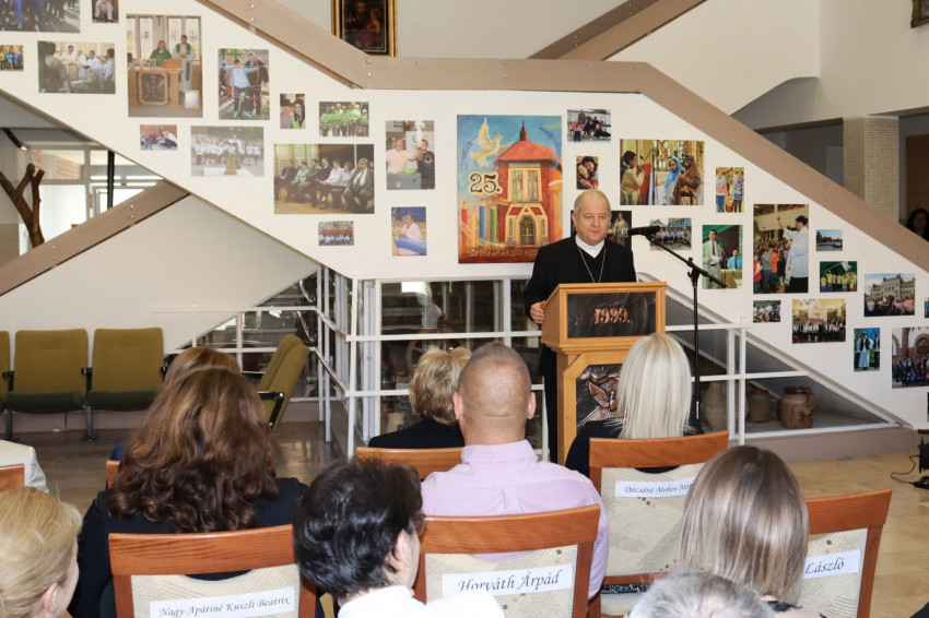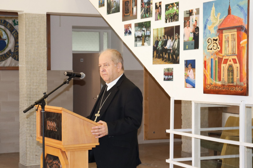 A főpásztor köszöntőjében visszaemlékezett a kezdeti nehézségekre, amelyeket az összefogás erejével sikerült legyőzni. Kiemelte, hogy az elmúlt években nemcsak általános iskolai, hanem óvodai nevelés is várja a gyermekeket, sőt katolikus gimnáziumi oktatásban is van lehetőség részt venni.