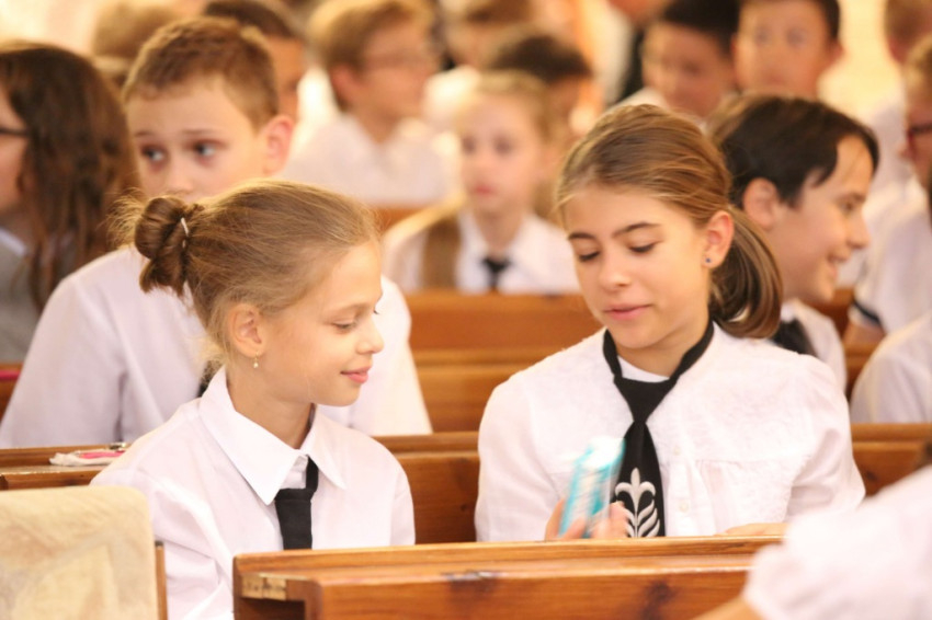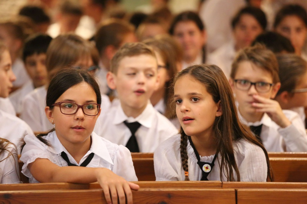A szentmise után Megyesi Mária, az iskola igazgatója fogalmazta meg gondolatait; a jelenlévők figyelmébe ajánlotta azt a kiállítást is, amely a hely szellemiségét, sajátos arculatát, kisugárzását ragadja meg a tanárok keze munkájának köszönhetően. Ezután diákjait kérte, nyissanak Isten felé, figyeljenek a feltétel nélküli szeretetére, hisz csak ennek befogadásából, átéléséből, azaz hitből nyerhetnek erőt az értelmes élethez. Megyesi Mária ezt követően bemutatta az iskola elmúlt huszonöt év alatt végbement fejlődését: az intézmény növendékei létszámát tekintve tizenkétszeresére bővült. A most induló tanévben 796 diák kezdi meg tanulmányait, 72 az óvodások, 165 fő a kollégisták száma, az alapfokú művészeti iskolába pedig több mint háromszáz diák beiratkozását várják.