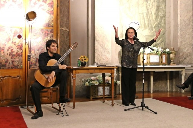 „Ismerve a művésznőt, biztos vagyok benne, hogy a mai estén kinyílik az ég, s híd épül lélektől lélekig Pitti Katalin segítségével” – zárta köszöntőjét Perger Gyula.