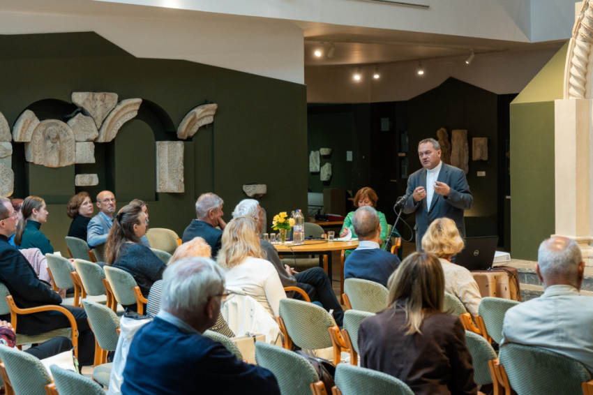 Felföldi László pécsi megyéspüspök köszöntőjében kiemelte, nem egyszerűen kövek és művészi munka, amit a Dóm Kőtárban láthatunk, hanem minden korban az embert megszólító alkotásokról, az emberről van szó. Engedjük, hogy ezek a faragványok ma is megszólítsanak minket nekünk szóló üzenetükkel. Fontos, hogy akik ide betérnek, vigyék magukkal a múlt szépségét, a jelen valóságát és a jövő feladatát – hangsúlyozta a püspök.