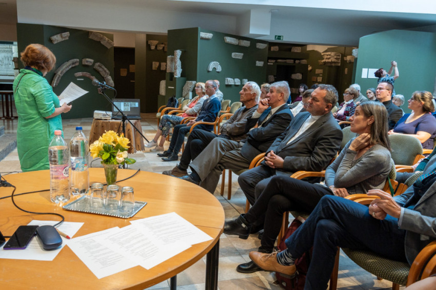 A Dóm Kőtár és a falai között látható kiállítás történetét Havasi Krisztina, a Bölcsészettudományi Kutatóközpont Művészettörténeti Intézetének tudományos munkatársa ismertette.