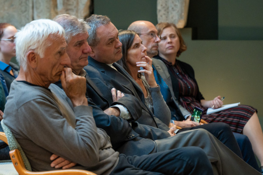 A beszélgetésen részt vett Felföldi László pécsi megyéspüspök, Havasi Krisztina, a Bölcsészettudományi Kutatóközpont Művészettörténeti Intézetének tudományos munkatársa, Osgyányi Vilmos kőszobrász, restaurátor művész, Raffay Endre művészettörténész és Takács Imre, az ELTE BTK Művészettörténeti Intézetének tanára, valamint Orbók Emőke, a Pécsi Egyházmegye turisztikai csoportvezetője.