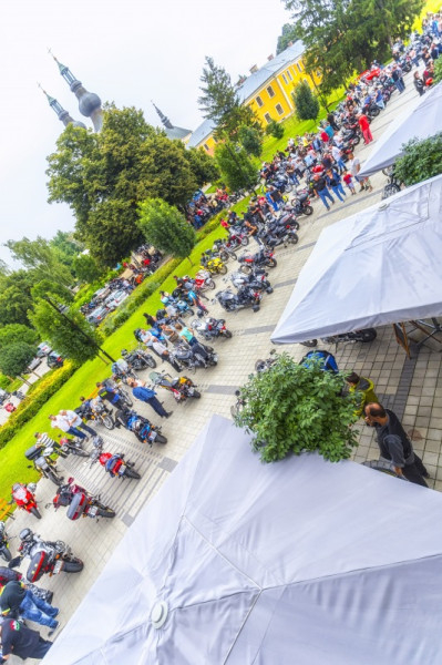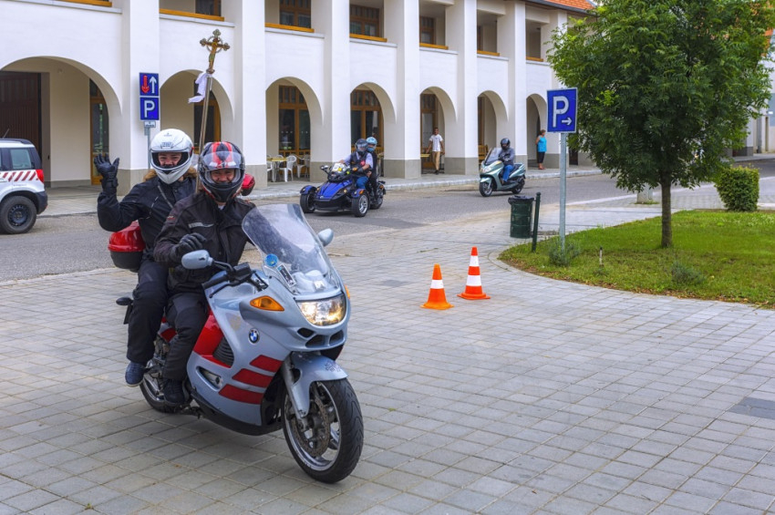 Ezt követően az Emmánuel Zarándokközpont előtti téren felsorakozott vaslovak hangja egyszerre bőgött fel, s a „motorok éneke” alatt a motoros atyák megáldották a zarándokokat és gépeiket.