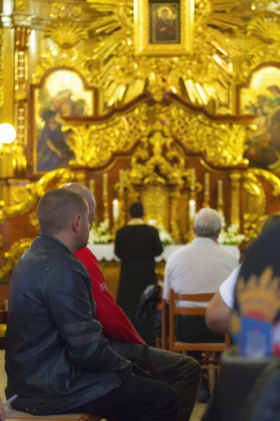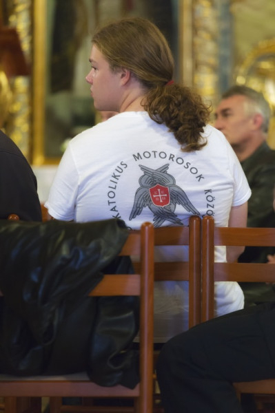 A kegytemplomban a Mária-ikon előtt az első imaórát imádkozták el Kiss Zsolt nyírbátori parókus, a zarándoklat egyik főszervezőjének a vezetésével a motorosok, akiket Bodogán László hajdúböszörményi parókus köszöntött. Beszédében kiemelte, azzal, hogy a végcéljuk Máriapócs volt, összekötötték a motorozásukat, a szórakozásukat egy magasabb dimenzióval, így az útjuk egy zarándoklat is volt egyben. Mint mondta, jó dolog, hogy habár sokan nem ismerik egymást, akik most jelen vannak, mégis egy közösséget alkotnak, aminek a Szentháromságon belüli közösség adja a mintáját. Rámutatott arra is, hogy a motorosok mindig igyekeznek valamerre, egy cél felé. Ez a cél ugyan földi, mégis mintája lehet egy másfajta útnak, ami a földről az égbe vezet.