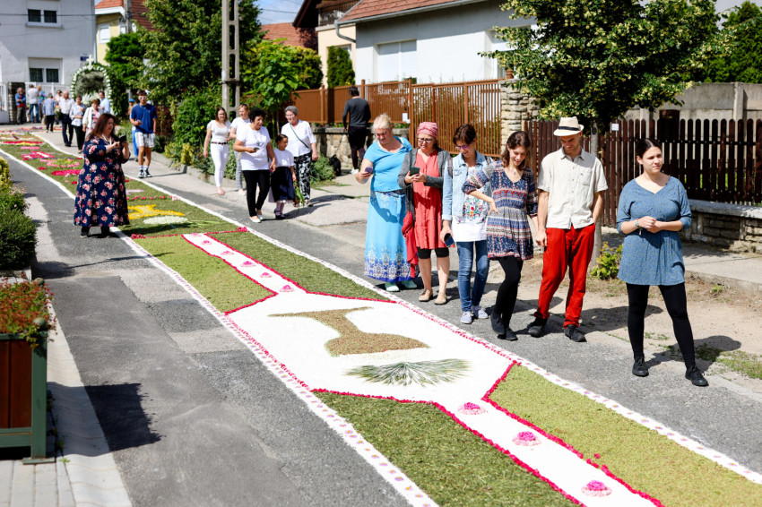 Ahogy őseik, a mai pilisvörösváriak is úrnapja előtti szombaton lekaszálják a csádét, egyfajta sást, ez képezi szecskázva a virágszőnyeg alapját a lósóska lemorzsolt magjával együtt.