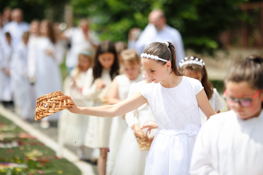 Egyesek, akárcsak régen, koszorúba kötve viszik az úrnapi körmeneten, mások hagyományosan a karjukra fektetve.