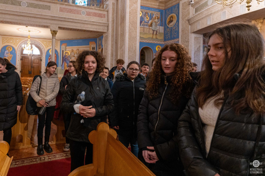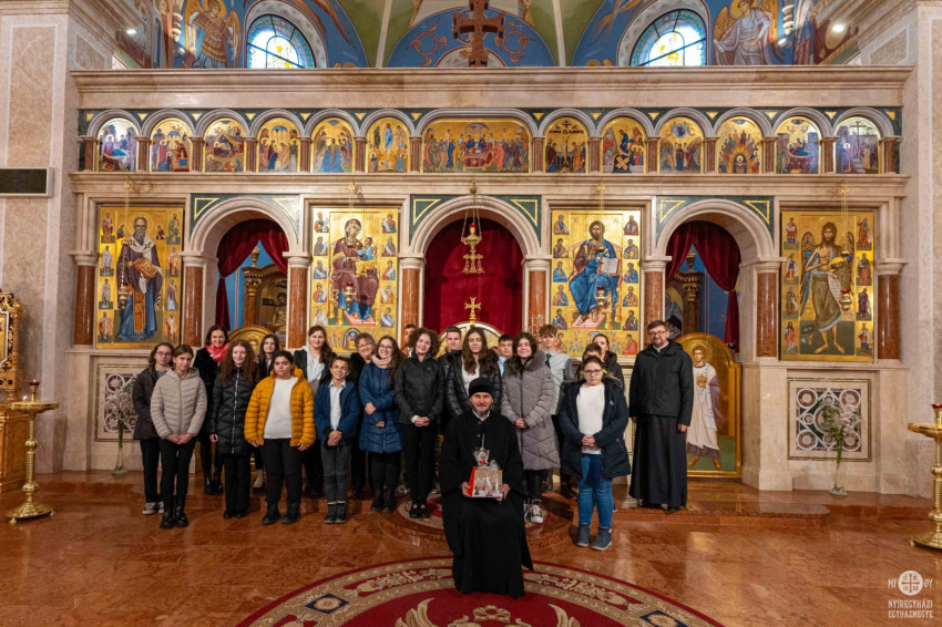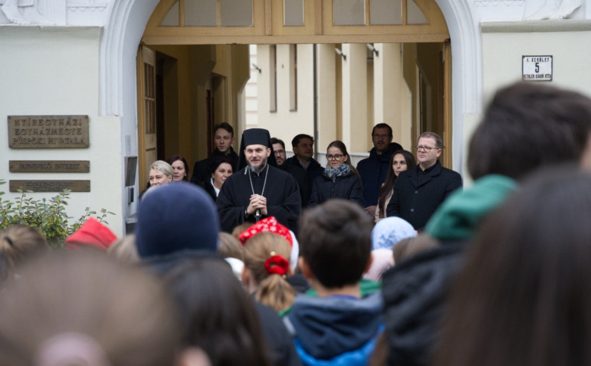 A nyolcadik osztályos diákok a vezetőkkel és kísérő tanárokkal együtt énekeltek karácsonyi dalokat citera- és furulyakísérettel. A máriapócsi iskolából hatodik éve érkeznek a megyeszékhelyre karácsony előtt, hogy megajándékozzák a főpásztort. Az énekszó mellett saját kezűleg készített ajándékokat is átadtak.