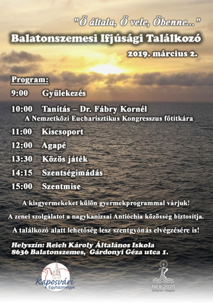 A találkozón előadást tart a Nemzetközi Eucharisztikus Kongresszus főtitkára, Fábry Kornél.