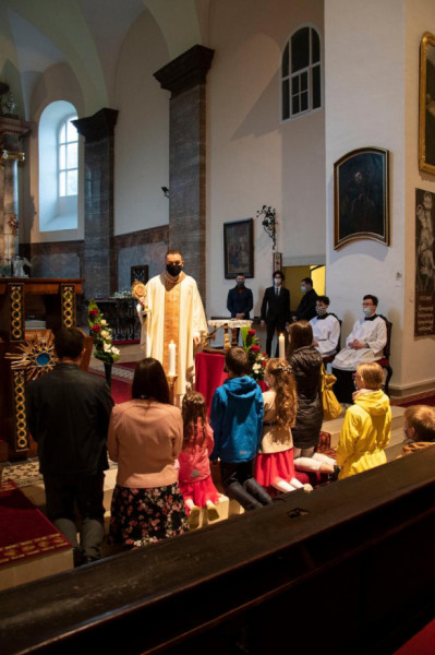Az eredeti tervek szerint Erdő Péter bíboros, az Esztergom-Budapesti Főegyházmegye érseke mutatta volna be a legszentebb áldozatot, de a rendkívüli helyzetre való tekintettel a helyi plébános, Schranko László vezette a szertartást.