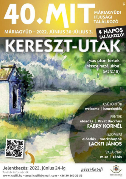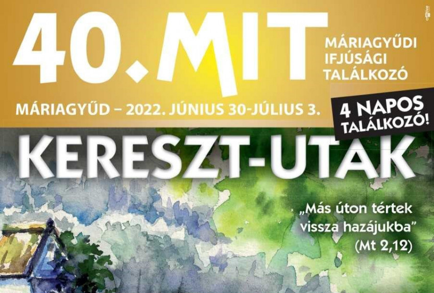 A 40. Máriagyűdi Ifjúsági Találkozó témájához kapcsolódóan – Kereszt-utak – ,,Más úton tértek vissza hazájukba” (Mt 2,12) – zene, közösség, műhelyek, játék, szentmise, dicsőítés, elcsendesedés, a természet szépsége és még megannyi egyéb lehetőség várja a fiatalokat június 30. és július 3. között a kegyhelyen.