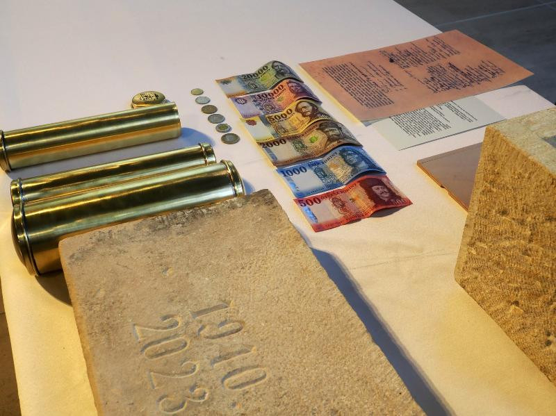 A most elhelyezett időkapszulák közül kettőt – egy kőládába helyezve – a beruházásokhoz kapcsolódó kutatások során találtak a főtemplom szentélyében lévő jobb oldali ülőfülke mögött, befalazva. Ezek és egy ezekhez hasonló mintára készített új időkapszula került most vissza az eredeti helyre.