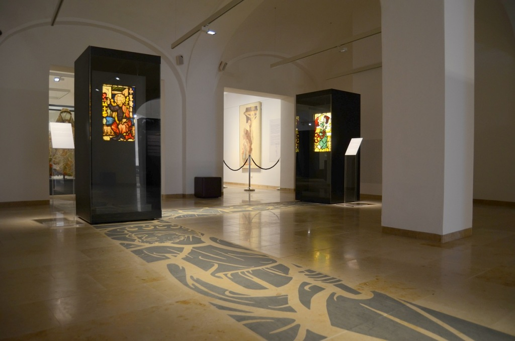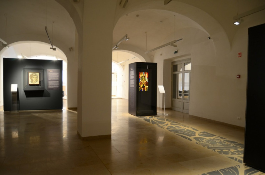 A kiállításokon négy ország tizenhét gyűjteményéből láthatók műtárgyak. Az Ikon és ereklye tárlaton kiemelkedik a vélhetően magyar vonatkozású, Szent Kálmánnak tulajdonított, XII. századi fejereklyetartó (Bencés Apátság, Melk), valamint Mária Magdolna és Keresztelő Szent János XIV. századi ereklyetartói (Egyházművészeti Kiállítás, Zadar). Az ikon nyugati recepciójának kiemelt emléke az a XIV. századi velencei diptichon (Keresztény Múzeum, Esztergom), amelyen a Mária-ikon már nem mint ikon, hanem mint gótikus építészeti környezetbe ágyazott kép jelenik meg. A Kép és kereszténység kiállítás anyagában a középkori vizuális médiumokat többek között XII. századi mozaikok (Museo Torcello, Torcello), XV. századi üvegablakok (Universalmuseum Joanneum, Graz), XIV. századi freskók (Szépművészeti Múzeum, Budapest), XV. századi táblaképek (Magyar Nemzeti Galéria, Budapest) és XI–XV. századi kódexek (Sankt Paul im Lavanttal; ELTE Egyetemi Könyvtár, Budapest; Országos Széchényi Könyvtár, Budapest) idézik meg. Az istentisztelet alternatív és exkluzív képi világába IX. századi Karoling elefántcsont könyvborító és XIII. századi miseruha (mindkettő Sankt Paul im Lavanttal) enged betekintést. A képhasználat nyilvános formái mellett megjelennek a magánáhítat képi eszközei is: XIV. századi kisméretű táblaképek és oltárok (Szépművészeti Múzeum, Budapest), valamint elefántcsont diptichonok (Iparművészeti Múzeum, Budapest).