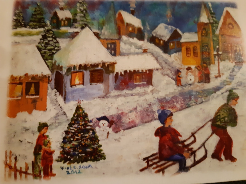 A kiállított képeket az ünnepkörhöz tarozó irodalmi anyaggal színesítették. A legrégebbi szentkép 1958-ból való, amelyen Mária a kisdeddel és az angyalokkal látható.