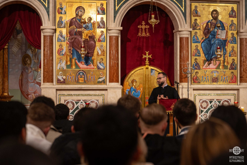 Grunda Dávid atya, a Korányi Frigyes Görögkatolikus Általános Iskola, Gimnázium és Kollégium lelki igazgatója ismerkedős és önismereti játékokkal indította az estet – bevonva eszközként a mindenkinél kéznél lévő okostelefonokat is.