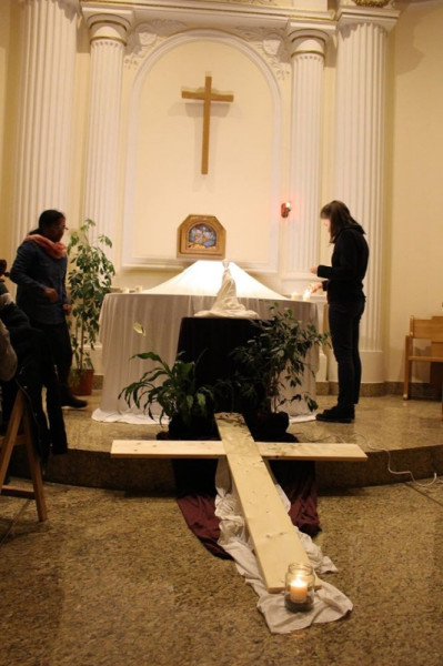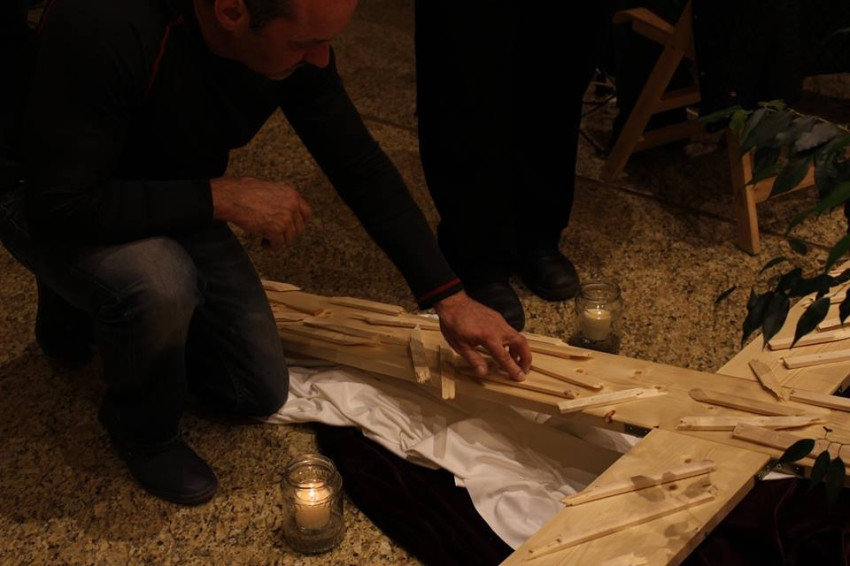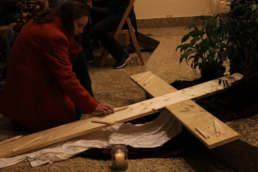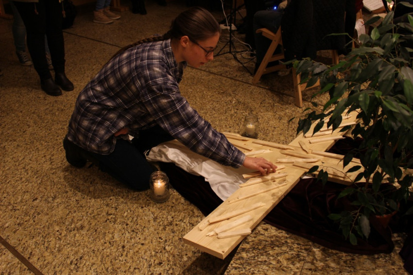 A tanúságtételt szentségimádás követte, mely alatt elcsendesedés, énekek és imádság adott lehetőséget arra, hogy személyesen és közösségben is az Úr elé lépjenek a résztvevők. Az érkezéskor mindenki kapott egy fadarabkát, amelyet az imádság alatt az oltár előtt elhelyezett feszületre illeszthetett – így osztozva Krisztus keresztjében. E fadarabok a jelenlévők bűneit, küzdelmeit, kérdéseit és mindennapi megpróbáltatásait is jelképezték.