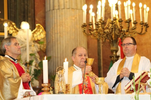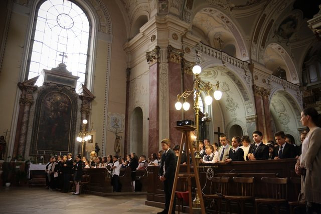 A szentmisén Bábel Balázs mellett Jeney Gábor plébános és Nagy Attila piarista szerzetes, iskolaigazgató koncelebrált, a két iskola diákjai együtt ministráltak.