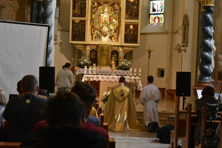 Ebéd után a templomban szentségimádással folytatódott a program, Bošňák András szenci káplán vezetésével: imák, énekek váltották egymást – főként a hivatástisztázás, az élethivatás melletti elköteleződés vágya fogalmazódott meg az Oltáriszentség előtt kimondott fohászokban.