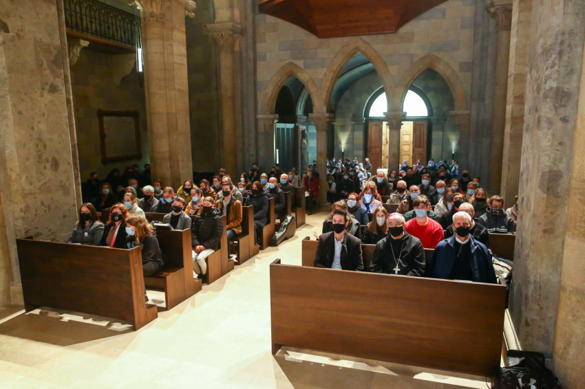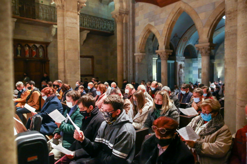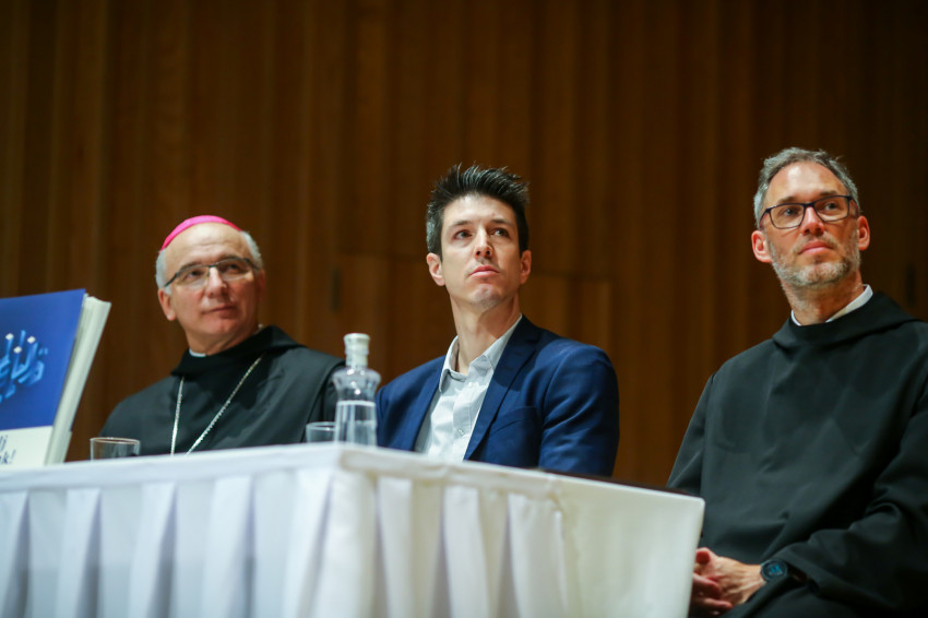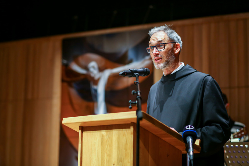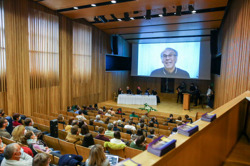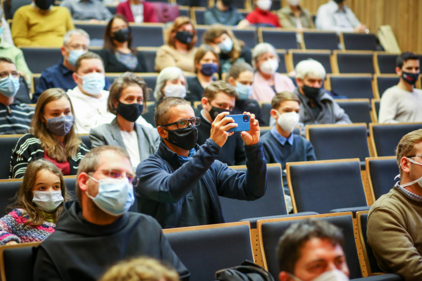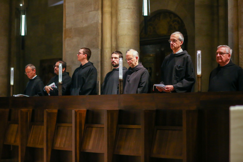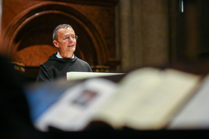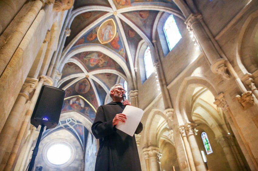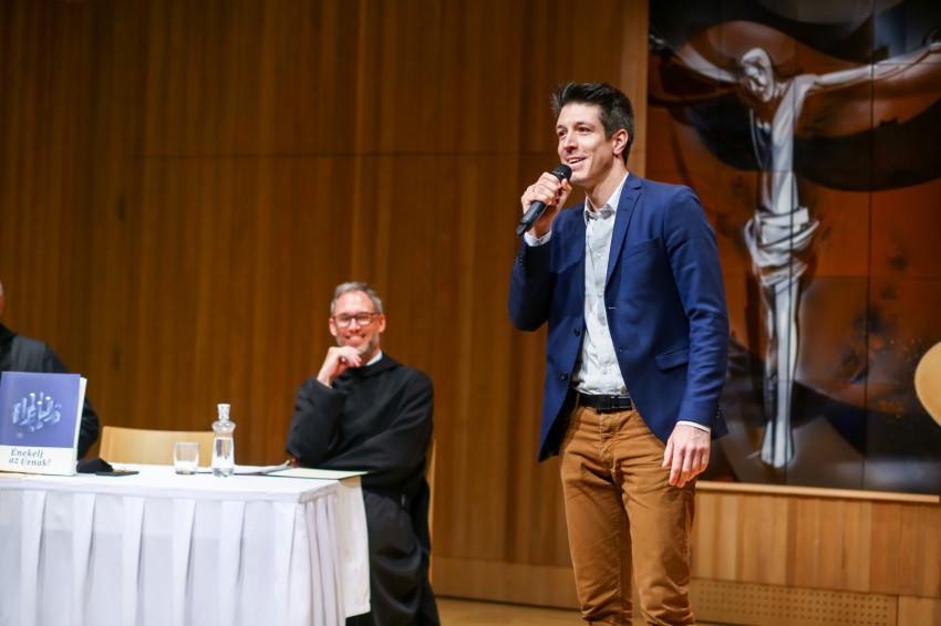 „Összegyűltünk, hogy együtt énekeljünk az Úrnak, és testvéri közösségben legyen részünk” – fogadta Dejcsics Konrád OSB, a főapátság kulturális igazgatója, a Bencés Kiadó vezetője az egybegyűlteket a főapátság vetítőtermében.