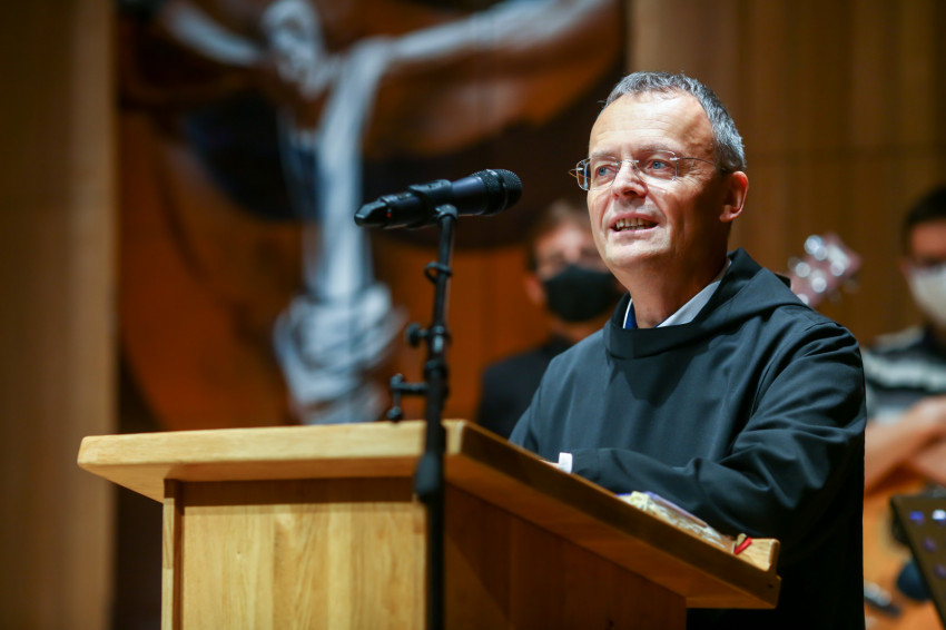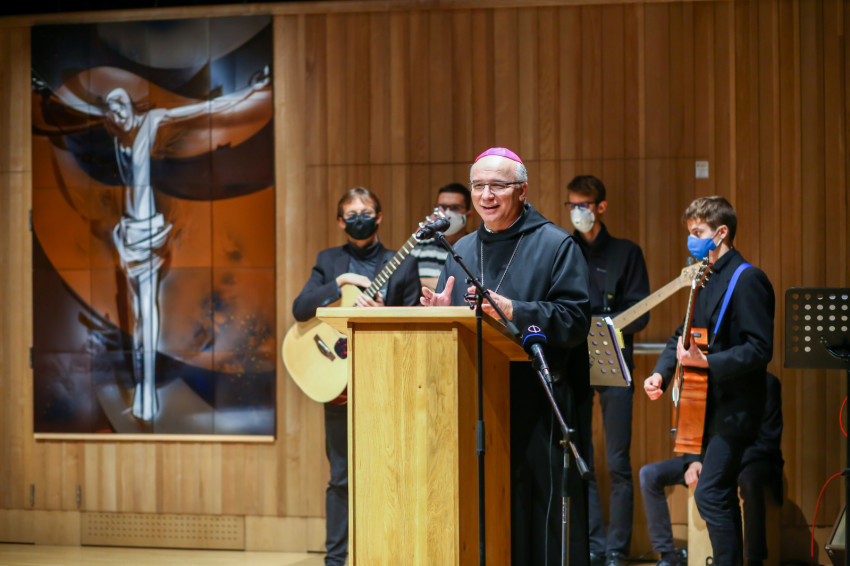 Majd Hortobágyi T. Cirill főapát köszöntötte az egybegyűlteket, kiemelten a megjelent „nagyokat”, az „öregeket”, az Énekelj az Úrnak! című, ismert és kedvelt „kék könyv” dal- és dalszövegszerzőit, akik „nemcsak létrehozták a dalokat, de meg is küzdöttek értük a ’70-es, ’80-as évektől fogva”.