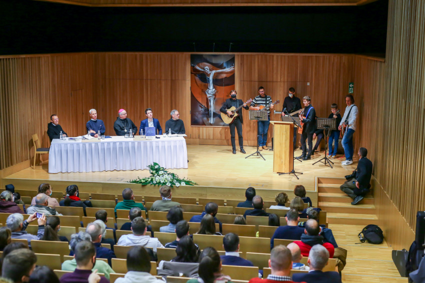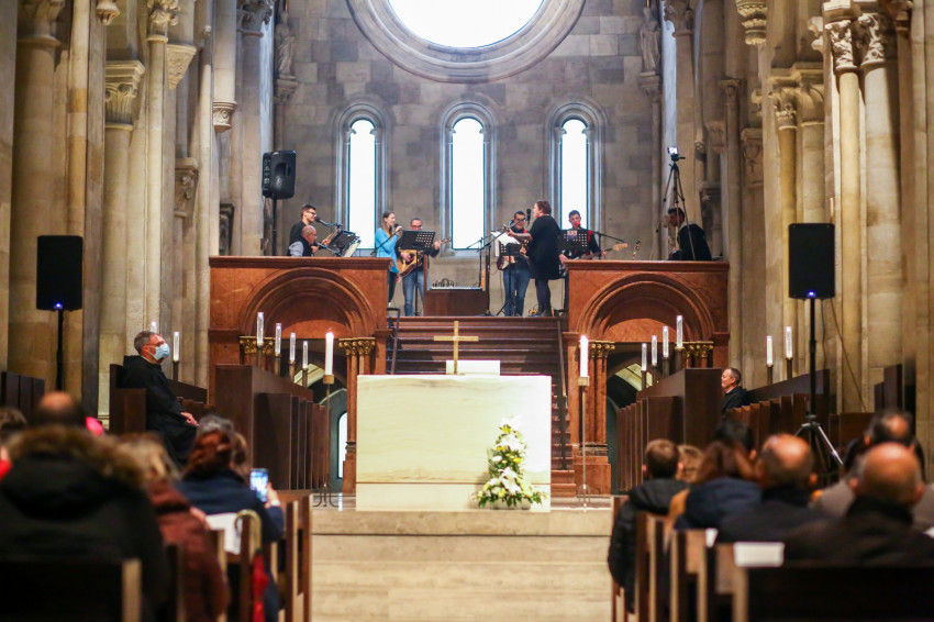 Az imádságot a szombathelyi Új esély zenekar vezette be, majd éles váltással a déli imaóra, a bencések gregorián zsolozsmája következett orgonás kísérettel, majd újabb váltás után a gitárosok körbevették az oltárt, és hosszan szólt az Istent dicsérő, hálaadó ének.