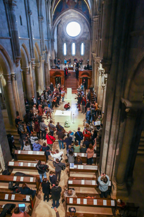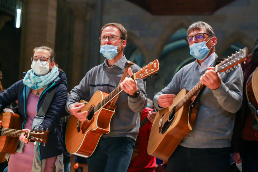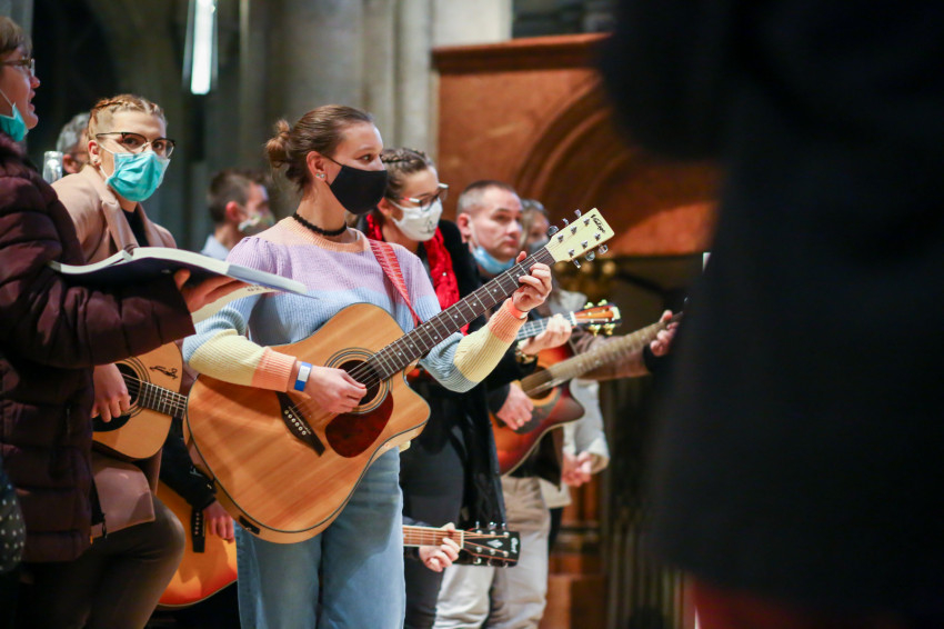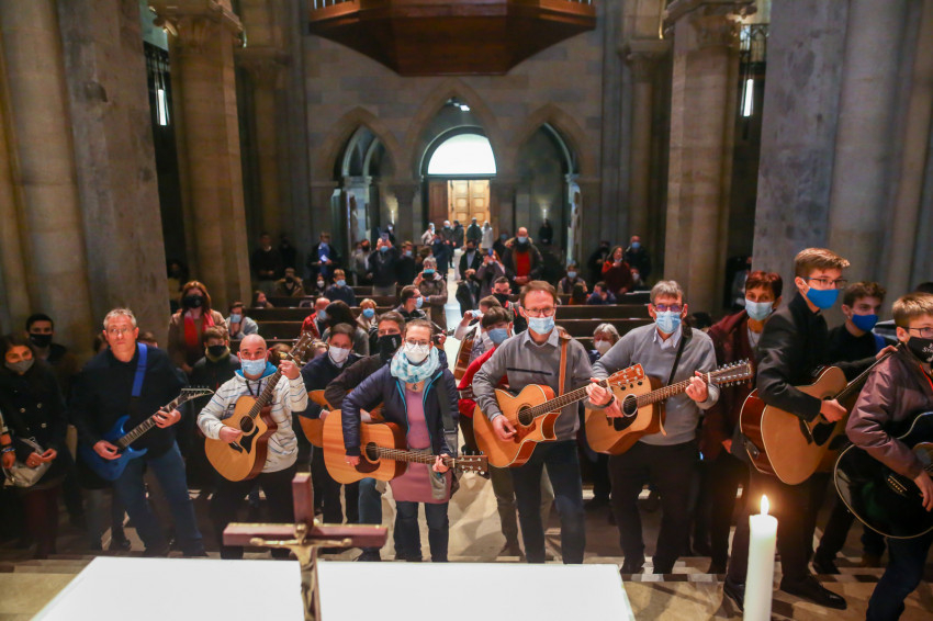 A pannonhalmi bazilika ezeréves falai között, ahol nap mint nap felcsendül az orgona, pendültek meg a húrok; ahol gregorián dallamokban, a zsoltárok ősi szövegeivel szólítják meg Istent, ott kísérte most gitár a dicsőítő dalokat. Pannonhalmán ezúttal ifjúsági és plébániai közösségek, katolikus ifjúsági zenekarok tagjai voltak a vendégek. Tanúságtételek, zsolozsma a bencés közösséggel, dicsőítő imaóra és flashmob gitárral – ezek voltak az országos találkozó programjai. Az eseményre nemcsak Nyugat-Magyarországról, de Debrecenből és Szegedről is érkeztek résztvevők.