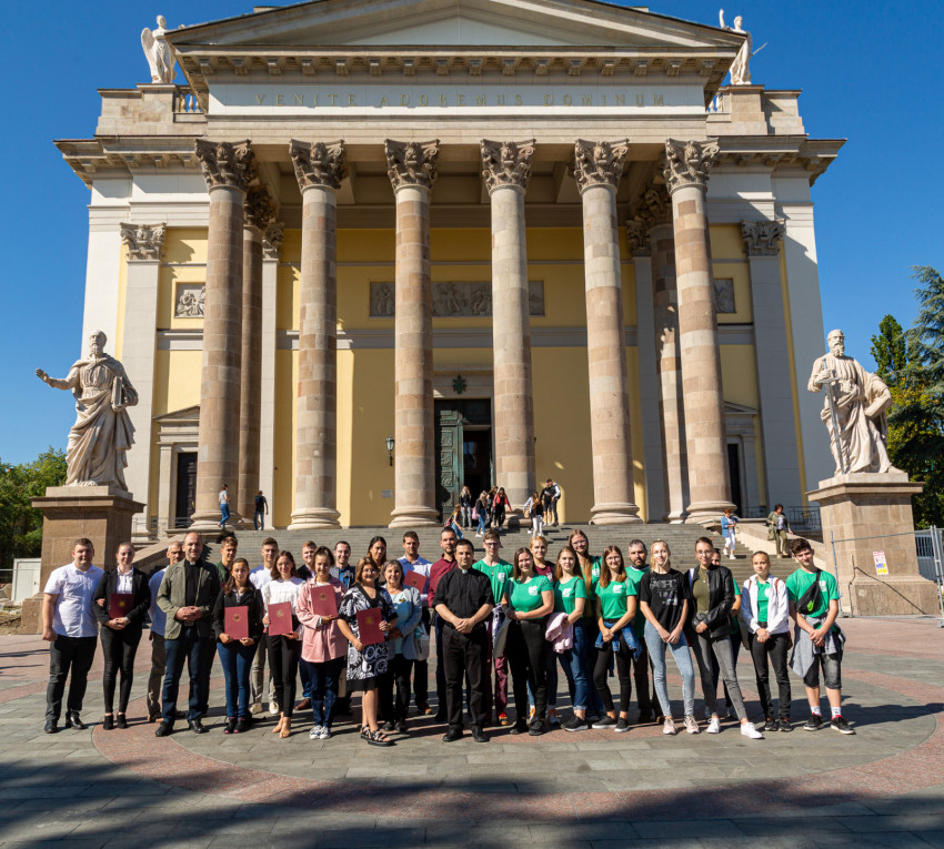 A hálaadó szentmisét Czapkó Mihály érseki titkár celebrálta, aki prédikációjában kiemelte a frissen végzett fiatalok számára: az oklevél átadásával nem értek az útjuk végére, hanem tovább kell menniük és értéket kell továbbítaniuk fiatal társaik felé.
