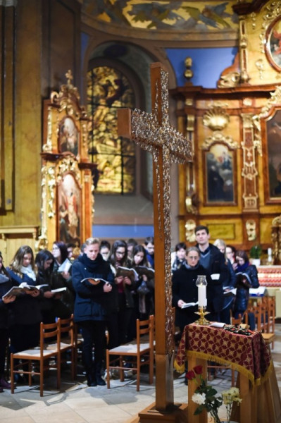 Ezt követően a fiatalok szimbolikusan Krisztus keresztje elé helyezték kérő, hálaadó és felajánló imáikat.
