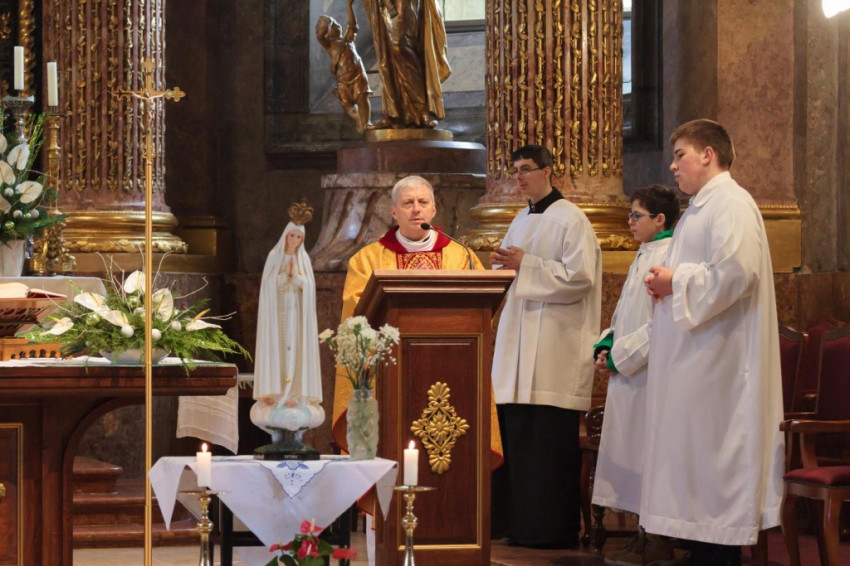 A Fatimai Boldogságos Szűz Mária tiszteletére bemutatott szentmisén Bognár István püspöki irodaigazgató, Győr városplébánosa koncelebrált.
