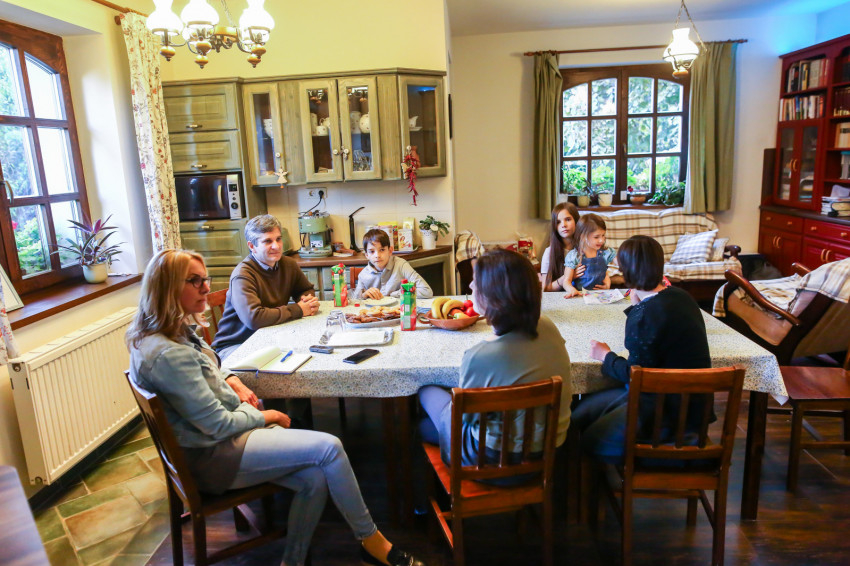 Az étkező falán egy fotó Beáról és Zsoltról, abból az időszakból, amikor még csak ketten voltak. 2005-ben házasodtak. Bea Kazincbarcikáról származik. „Budapestre kerültem főiskolára: pedagógiát, államigazgatást, lelkigondozást és teológiát tanultam, mellette pedig dolgoztam. Zsolttal a munkahelyemen ismerkedtünk meg.” Zsolt tősgyökeres kistarcsai parasztcsaládból való. A felmenői között akadtak bírók is. A Rapaiak eredete az 1600-as évekre vezethető vissza. Ő maga autószerelőnek tanult, majd elvégezte a főiskolát. Egy gépkocsiimportőr cégnél dolgozik már huszonegy éve. Miközben ezt meséli, Juditka izgatottan hozza megmutatni Pamacsot, a hörcsögöt. „Nekem meg a tigris a kedvencem, mert az a legcukibb állat – vágja közbe Hanna. – Azt is kértem karácsonyra, én nem félek a tigristől.” Leülünk a nagy asztalhoz, a kisebbek hozzák a színezőt.