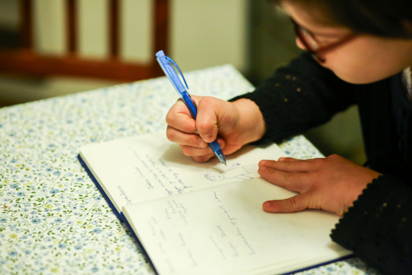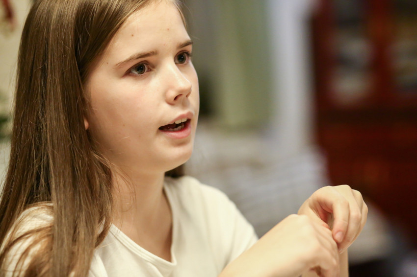 Hannának viszont most, kamaszkorára nehéz elfogadnia magát. Egyes dolgokban már nagylány, másokban pedig nem. Nagyon szeret neveket írogatni a gyöngybetűivel füzetekbe. „Én szégyellem, ha azt mondják, Hanna downos. Ez nem igaz, mert nem vagyok az, csak annak születtem” – mondja. Édesapja felidézi, hogy a lánya három éve egyszer azt mondta, nem akar downos lenni. „Akkor nem engedte, hogy megcsináljuk a haját, és le is fogyott. Most is látja magát és a helyzetet kívülről, érzékeli a korlátait. Zavarja például, ha a legkisebb kioktatja őt. Most nyáron viszont egy táborban megvigasztalt egy nála sokkal idősebb Down-szindrómás fiatalembert, aki szintén önelfogadási problémákkal küzdött.”