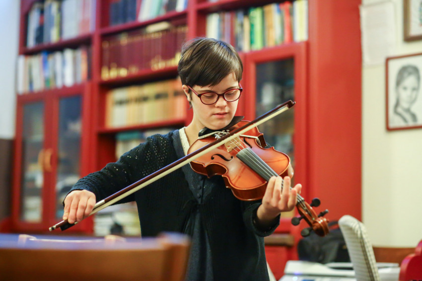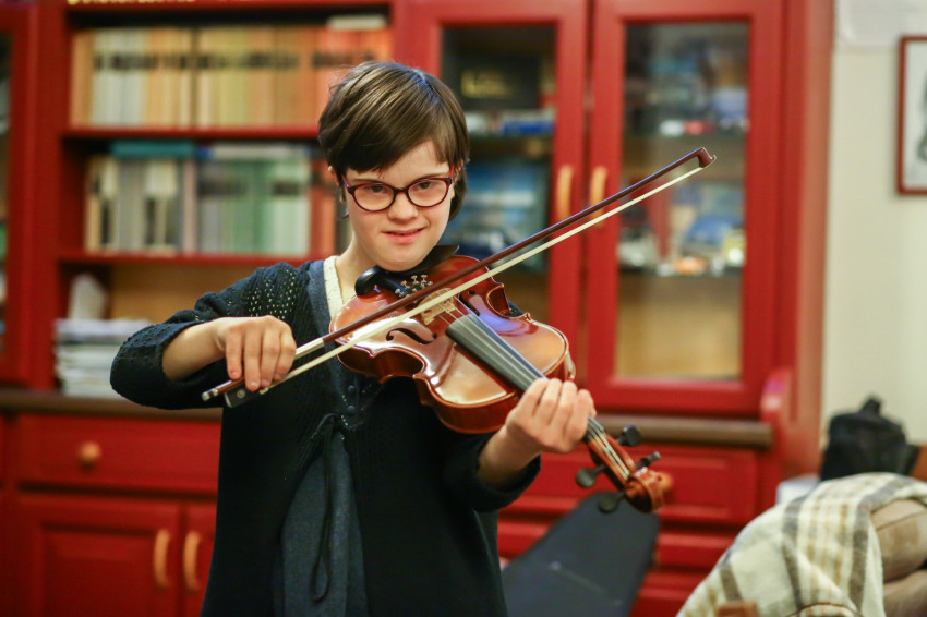 Történt, hogy Csenge hegedűtanára egyszer azt kérte, hadd foglalkozzon Hannával színkottás tanítási módszerrel. A downos lány így elkezdett zongorázni tanulni. Amikor Hannát felvették a zeneiskolába, áttért a hegedűre, hogy ugyanaz a tanárnő taníthassa. Olyan ügyes volt a zenélésben, hogy Bea feltett Hanna hegedüléséről egy videót az internetre, a Down-szindrómás gyerekeket nevelő szülők csoportjába. Az M1 riportere látta ezt, és készített velük egy interjút Az Esély című magazinműsorba. Bea azt is elmondja, hogy Hanna nem kap könnyítést se szolfézsból, se hegedűből, de nagy szeretettel, figyelemmel és elfogadással fordulnak felé a zenetanárai. 2019-ben pedig elnyerte A Nemzet Fiatal Tehetségeiért ösztöndíjat. Hanna el is játszik nekünk három dalt, megrendítő, ahogy lefogja a húrokat a kicsi ujjaival. „A hegedülésével sokakat biztat. Ha az emberek látják őt, megerősödnek abban, hogy olyan dolgokra is képesek lehetnek, ami addig lehetetlennek tűnt számukra.”