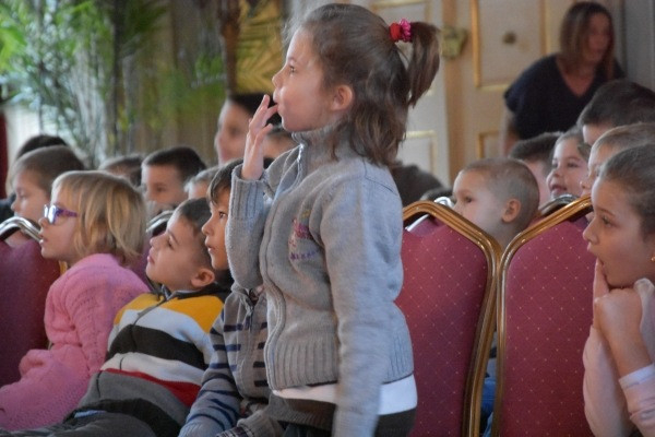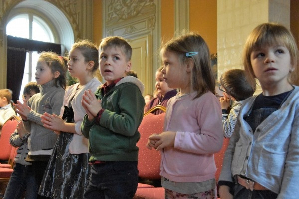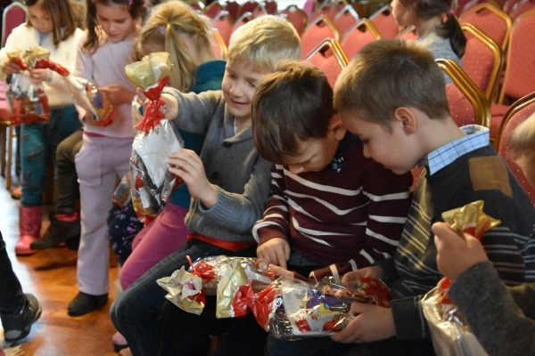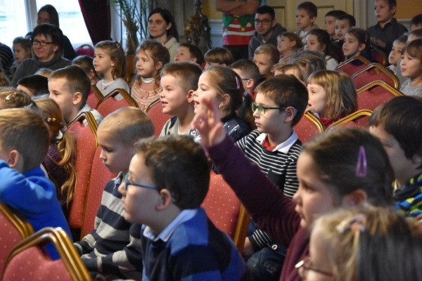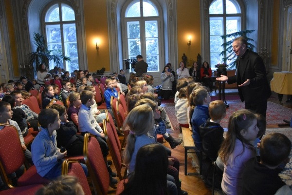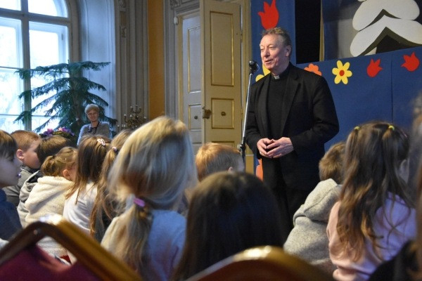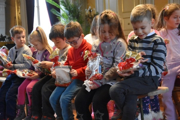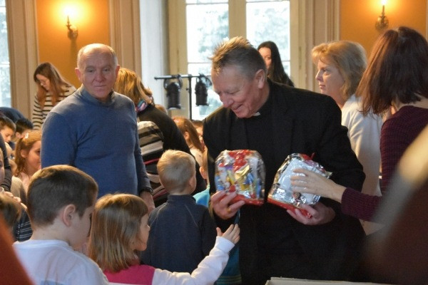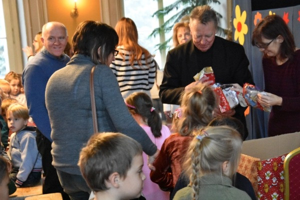 Az előadást követően Beer Miklós váci megyéspüspök köszöntötte az óvodásokat, azt kívánva nekik, hogy jöjjön el szívükbe Jézus Krisztus, és legyen áldott ünnepük. A főpásztor minden gyermeknek személyesen adta át a Mikulás-csomagot, kedves szavak kíséretében.