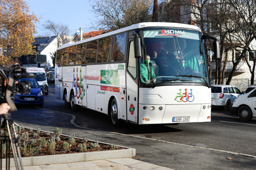 A speciális autóbusz első „hivatalos útja” Ipolytölgyesről Pasarétre vezetett: a Katolikus Szeretetszolgálat fenntartásában működő Szent Erzsébet Otthon lakói és kísérőik érkeztek, hogy ők is részt vegyenek a megállapodás ünnepélyes aláírásán.