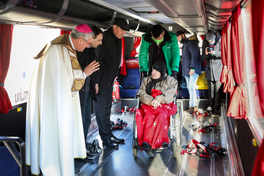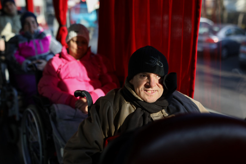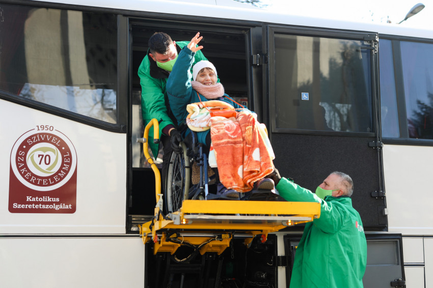 Az otthon lakói megilletődötten, de az élménytől izgatottan szálltak le a buszról a Páduai Szent Antal-templom előtt. Valóban különleges, hogy együtt utazhattak – erre eddig nem volt lehetőségük, ugyanis Magyarországon ez az első olyan busz, melyben tizenhárom kerekesszékes és segítőik egyszerre utazhatnak.