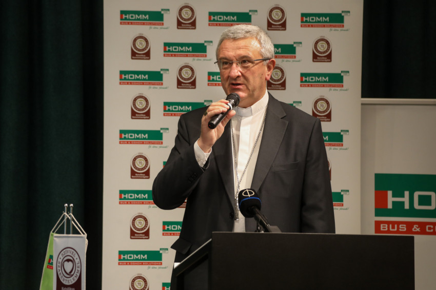 Végül Veres András püspök, az MKPK elnöke szólt az egybegyűltekhez, rámutatva arra, hogy ez az időszak mindenki számára különleges: a karácsonyra készülünk. Urunk, Jézus Krisztus születésére emlékezünk, de nemcsak megemlékezni szeretnénk róla, hanem azt is szeretnénk, ha a szívünkben is megszületne a Messiás. Bűneink miatt mindig rászorulunk az újjászületésre, és ez a mai esemény arra bátorít, hogy akarjuk felfedezni az ajándékot a szívünkben, amely miatt az Isten Fia megtestesült. Ő szeretetből jött a világba értünk, emberekért, és mindannyian képesek vagyunk arra, hogy Isten képmásaiként a szeretet tanúi legyünk ebben a világban.