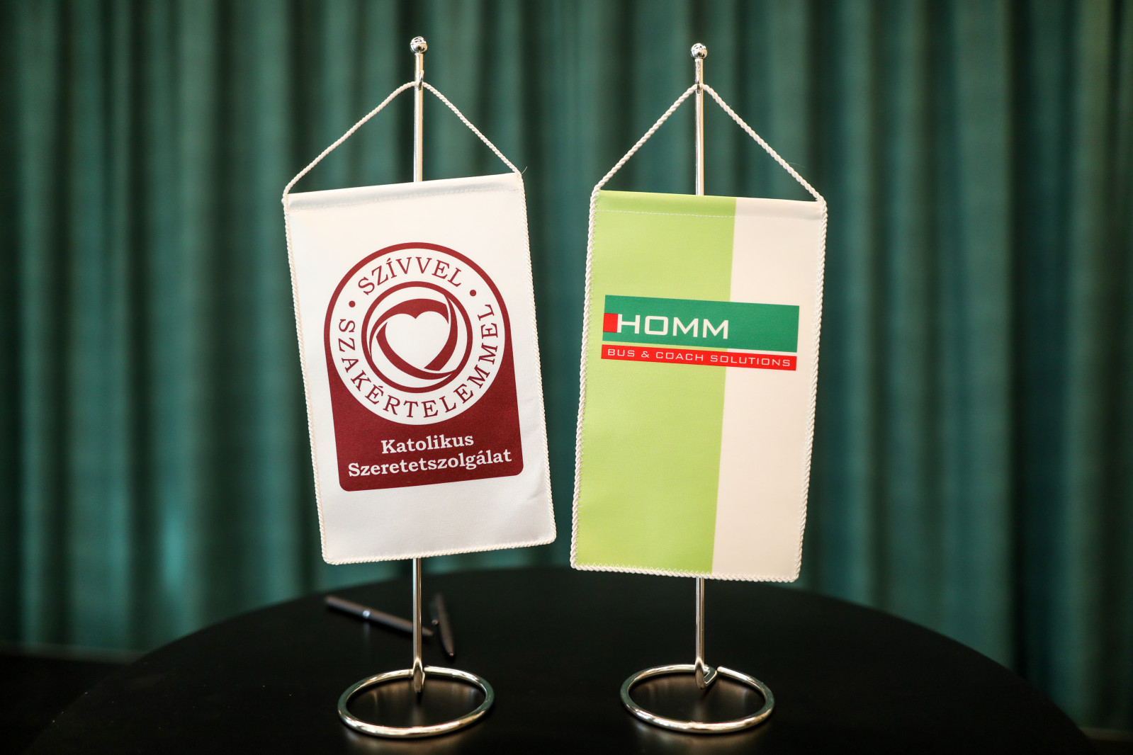 A HOMM Kft. az autóbuszos személyszállítás egyik legdinamikusabban fejlődő magántársasága immár három évtizede. A társaság kedvezményes feltételek mellett, az üzemeltetési költségeknél is alacsonyabb összeg ellenében bocsátotta a Katolikus Szeretetszolgálat rendelkezésére a speciálisan átalakított autóbuszt. A szervezet intézményeiben élő, mozgásukban korlátozott kerekesszékes lakók így olyan programokra is eljuthatnak, melyekre eddig nem volt lehetőségük. A most aláírt megállapodás utat kíván nyitni a hasonló intézményeket működtető egyházi, illetve állami fenntartók felé is.