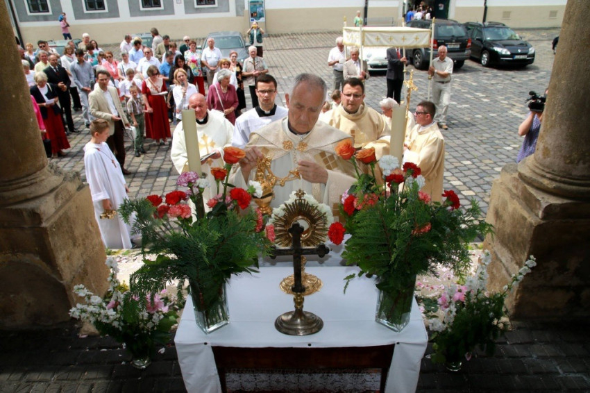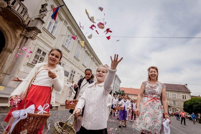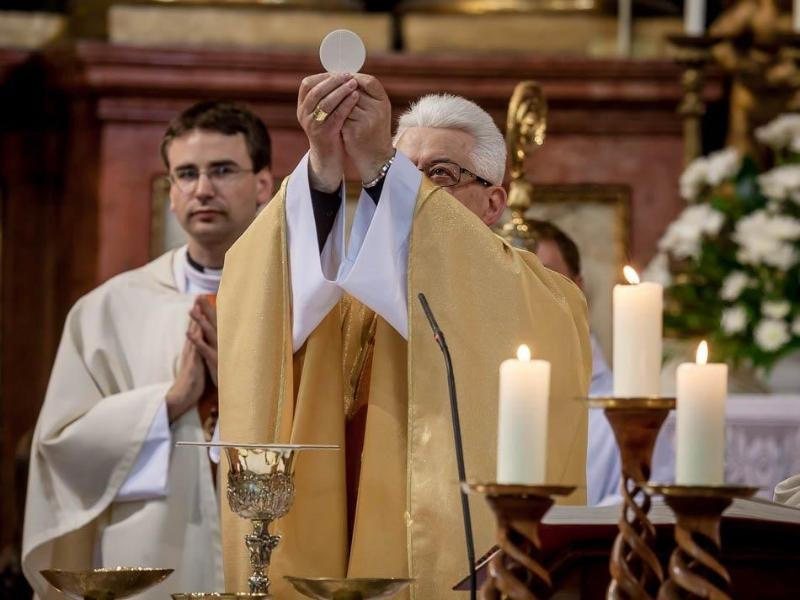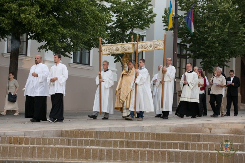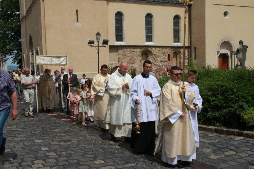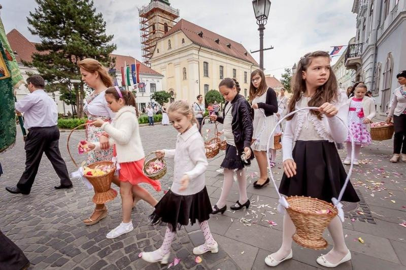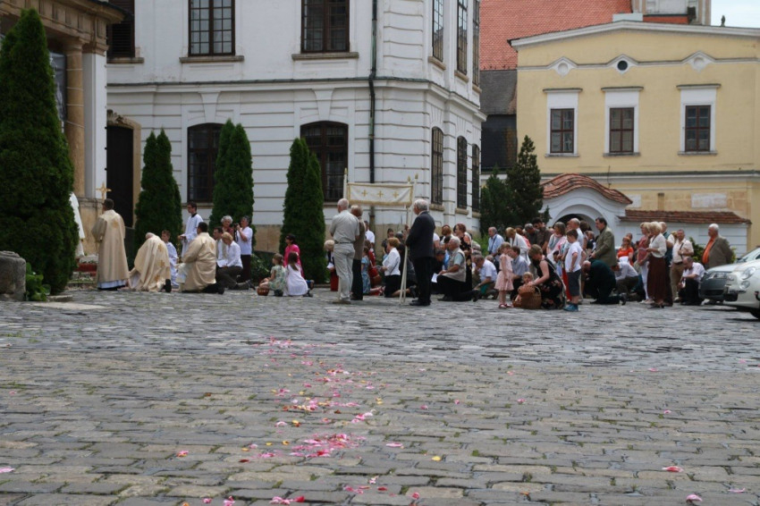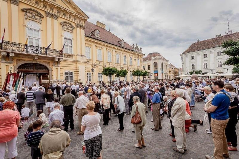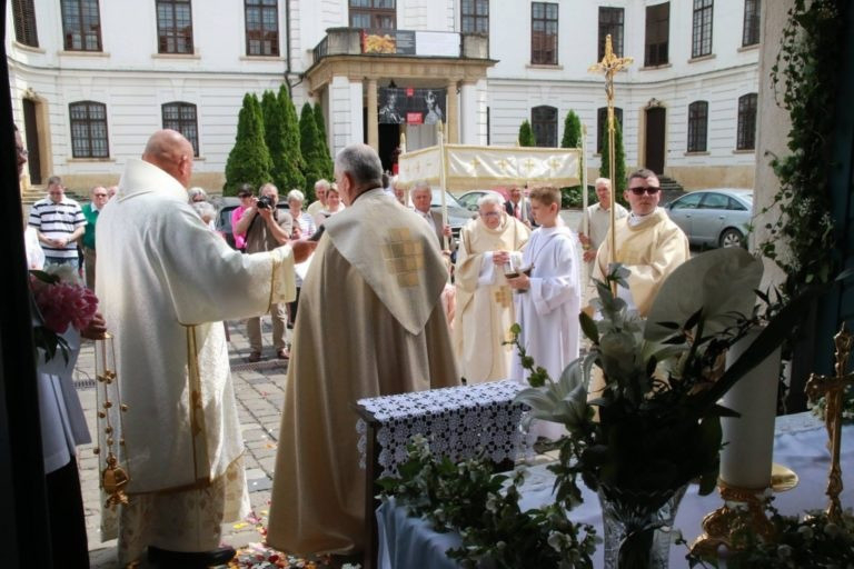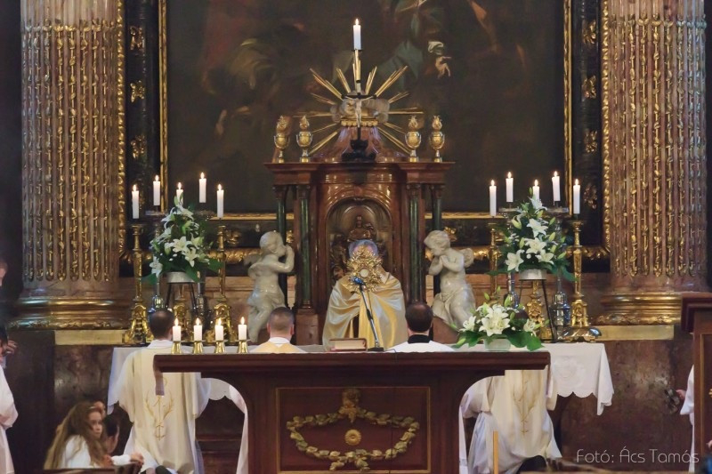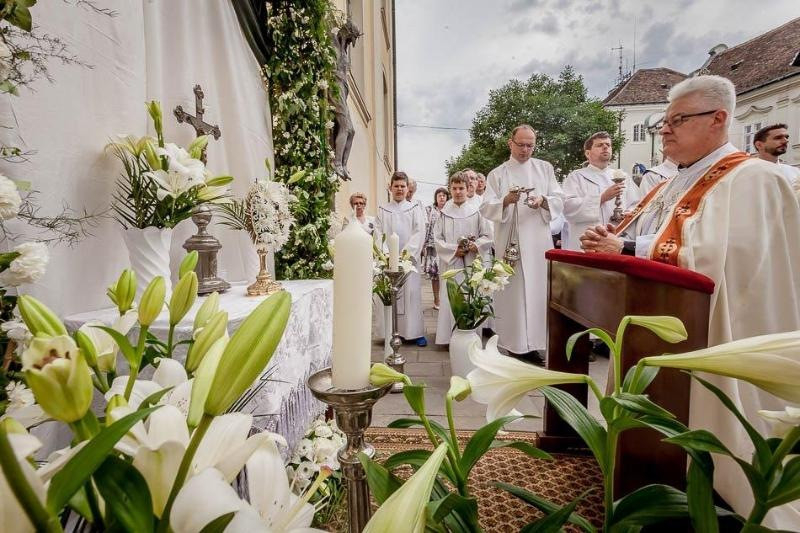 Pécsett Udvardy György megyéspüspök celebrálta az úrnapi szentmisét a székesegyházban, amelyen a szokásnak megfelelően elsőáldozó gyerekek is részt vettek.