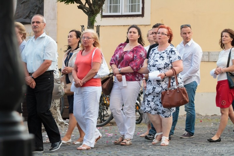 A szentmise után a főpásztor a székváros híveivel körmenetben vitte végig az Oltáriszentséget a belvárosban. A feldíszített oltárokhoz a város papsága, az asszisztencia, a zászlóvivők, a képviselők, az énekkar és virágszóró kisgyermekek kísérték a szentséget. A felállított négy oltárnál közösen megvallották hitüket, és imádkoztak a világért. Majd visszatértek a bazilikába, ahol a püspöki áldás után a pápai és a magyar himnusszal ért véget az ünnep.