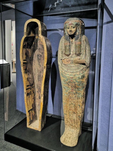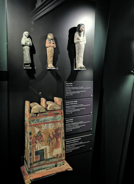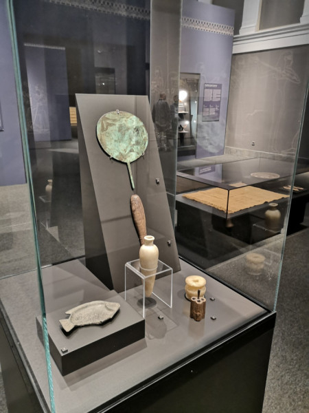 A kiállítás látogatói ne számítsanak a világ legjelentősebb egyiptomi gyűjteményeiben előforduló szoborkolosszusokra, roncsoltságukban is gigantikus pillérekre, pálmaleveles oszlopfőkre, reliefes, domborműves falrészletekre, közszemlére tett kicsomagolt múmiákra. A zegzugosított termekben szellősen elhelyezett újbirodalmi tárgyegyüttes mintha a Szépművészeti Múzeum mélyföldszintjére költöztetett, nemrég újrarendezett egyiptomi anyagának egyfajta tematikus kiegészítése lenne.