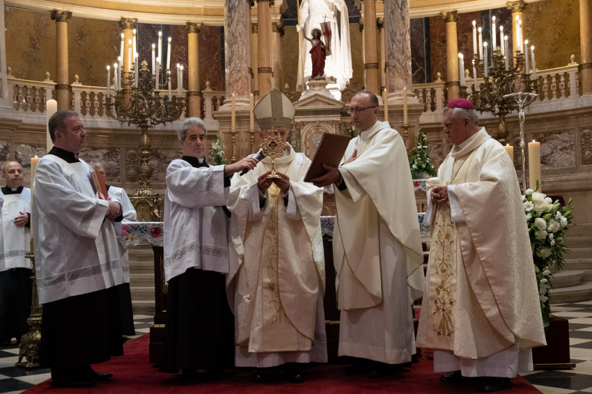 Köszönete mellett Snell György esztergom-budapesti segédpüspök, a Szent István-bazilika plébánosa elmondta, a közösség régi vágya teljesült, hiszen az ereklye megjeleníti a szent emberségét, akinek nemcsak közbenjárását kell kérnünk, hanem követnünk is kell őt mindenben.