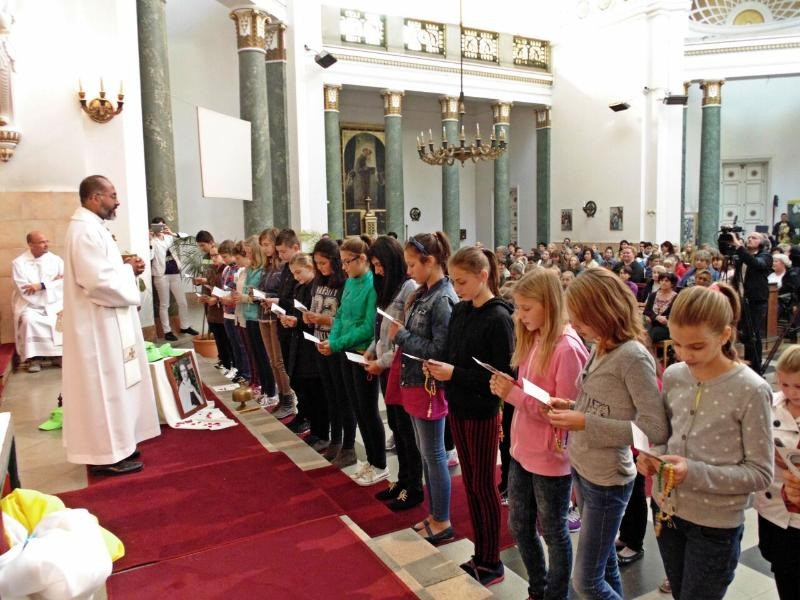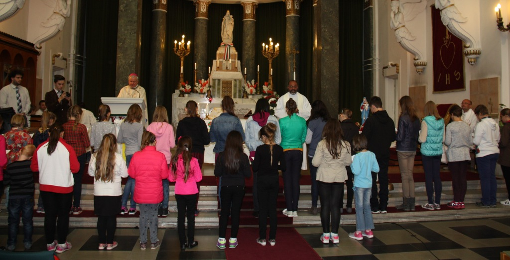 A beiktatási ceremónia keretében negyven újonnan csatlakozó gyermek missziós fogadalmát áldotta meg Kiss-Rigó László.